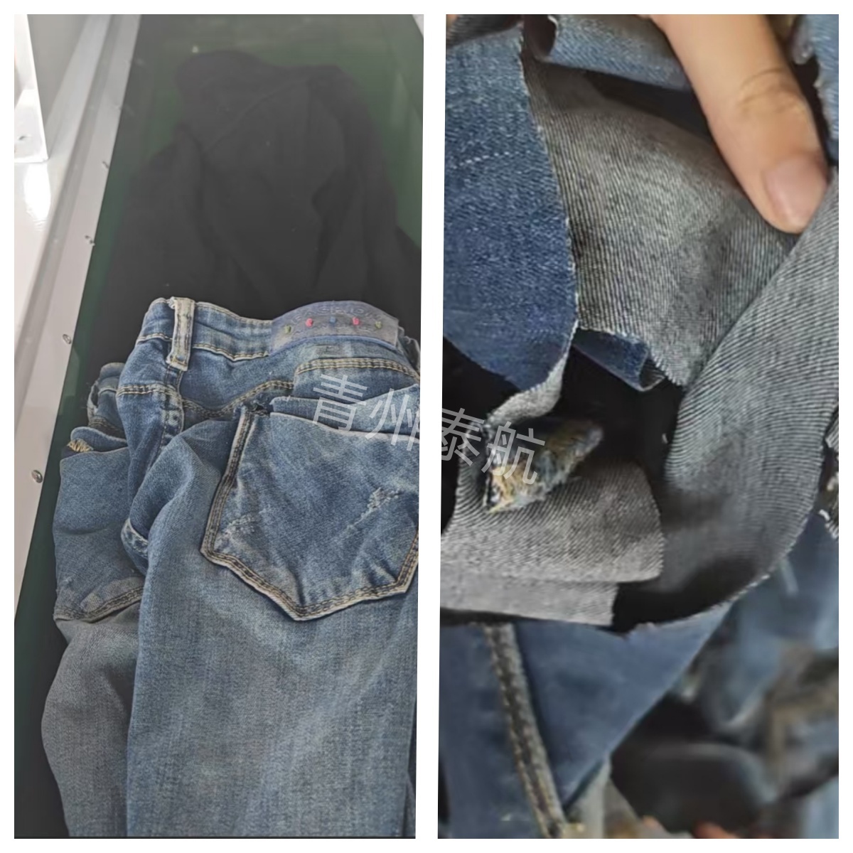 牛仔褲切斷對比
